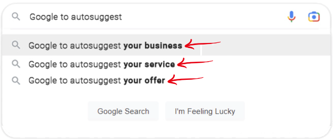 When Potential Customers Search For Your Services or Products Online, Your Business Gets Auto Suggested Right In Google's Search Box!