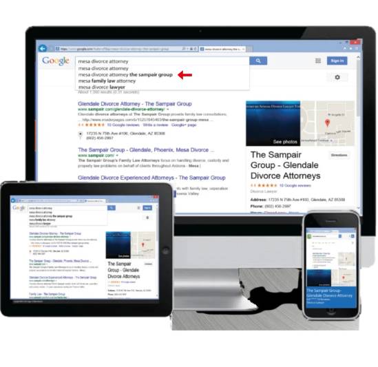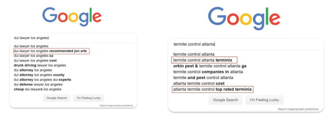 It's really simple. When a potential customer types in relevant search terms related to what you do, we can make your business name appear in the search box as one of the auto-complete suggestions.